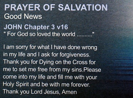 If you would like to be saved, or you would like to rededicate your life or you're not sure if you were to die today that you would go to heaven then say this prayer and mean it with all your heart and you will be save. God Bless You. "My